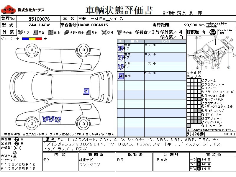 フル装備 / CD / 乗車定員(4人) / 集中ドアロック / エアバッグ / 助手席エアバッグ / ABS / トラクションコントロール / カーナビゲーション(インダッシュ,SSD,2DIN) / テレビ(アナログ) / バックカメラ / ETC(社外) / アルミホイール(15インチ) / スマートキー / ディスチャージ / ハイマウントストップランプ / リアスポイラー /