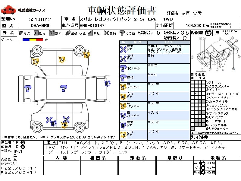 フル装備 / CD(社外) / 乗車定員(5人) / 集中ドアロック / エアバッグ / 助手席エアバッグ / サイドエアバッグ / ABS / トラクションコントロール / カーナビゲーション(社外)(インダッシュ,HDD,2DIN) / ETC(社外) / アルミホイール(17インチ) / 革シート(黒) / スマートキー / ディスチャージ / ハイマウントストップランプ / フォグランプ / リアスポイラー /
