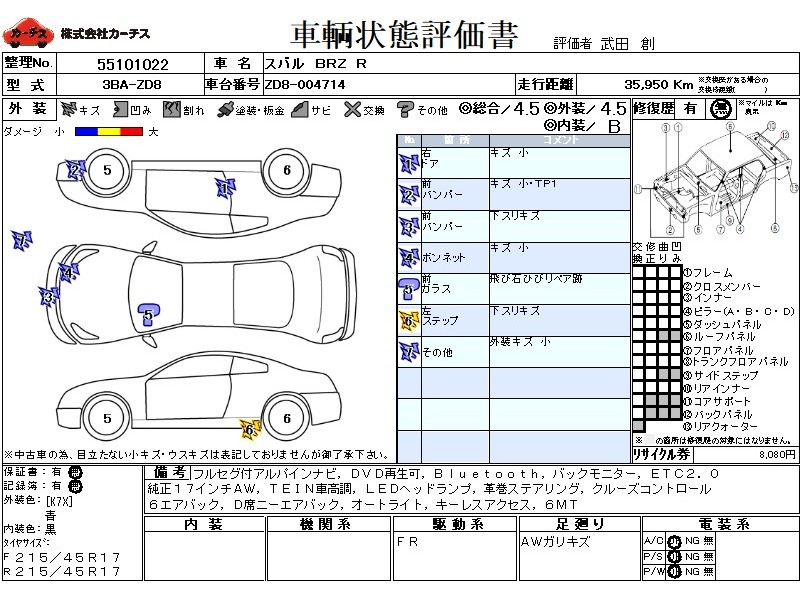 フル装備 / CD / 乗車定員(4人) / エアバッグ / 助手席エアバッグ / サイドエアバッグ / ABS / トラクションコントロール / クルーズコントロール / カーナビゲーション(SSD) / テレビ(アナログ) / 地デジTV / バックカメラ / ETC / アルミホイール(17インチ) / スマートキー / ハイマウントストップランプ / 足回り /