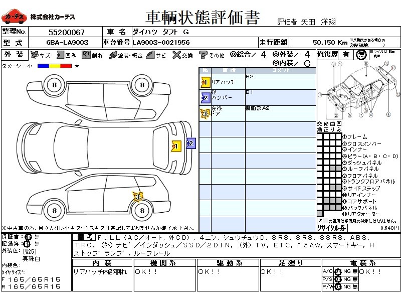 フル装備 / CD(社外) / 乗車定員(4人) / 集中ドアロック / エアバッグ / 助手席エアバッグ / サイドエアバッグ / ABS / トラクションコントロール / カーナビゲーション(社外)(インダッシュ,SSD,2DIN) / テレビ(社外) / 地デジTV(社外) / ETC / アルミホイール(15インチ) / スマートキー / ハイマウントストップランプ / フォグランプ / ルーフレール /
