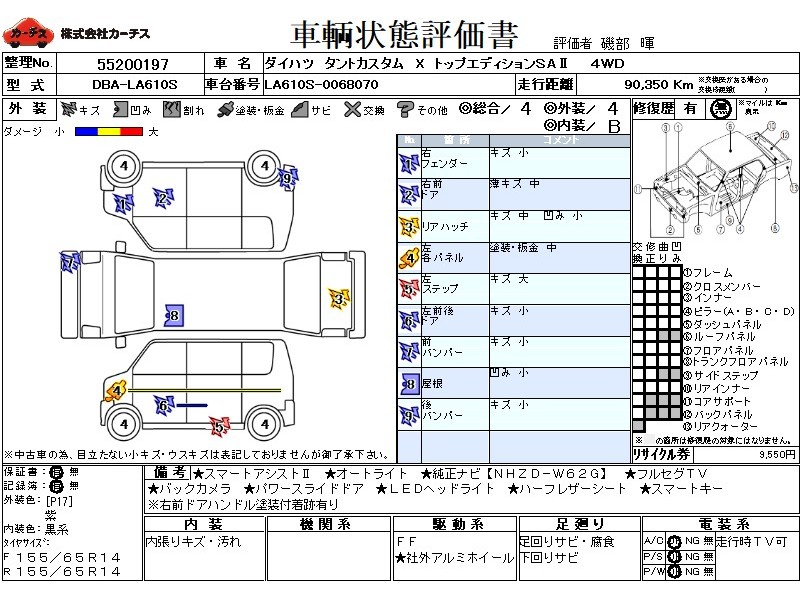 フル装備 / CD / 乗車定員(4人) / 集中ドアロック / エアバッグ / 助手席エアバッグ / サイドエアバッグ / ABS / トラクションコントロール / カーナビゲーション(インダッシュ,HDD,2DIN) / 地デジTV / バックカメラ / アルミホイール(社外)(14インチ) / ハーフレザーシート / スマートキー / ウインカーミラー / ハイマウントストップランプ / パワースライドドア / フォグランプ / リアスポイラー /