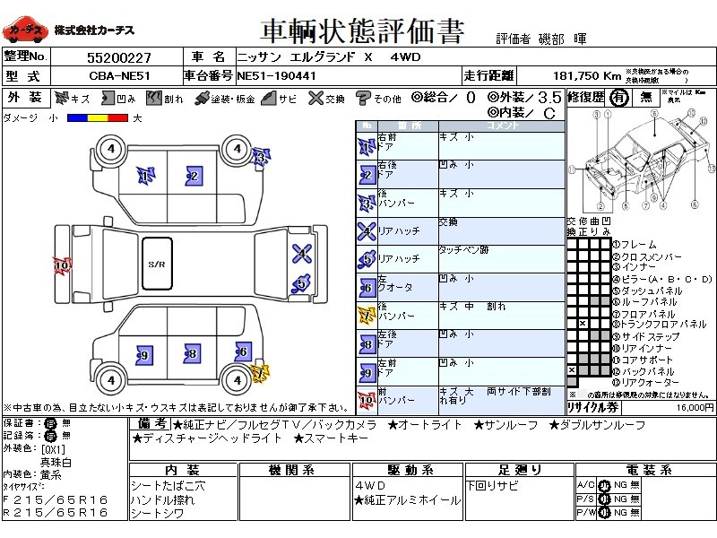 フル装備 / CD / 乗車定員(8人) / 集中ドアロック / エアバッグ / 助手席エアバッグ / ABS / トラクションコントロール / クルーズコントロール / カーナビゲーション(インダッシュ,DVD,2DIN) / 地デジTV / バックカメラ / ETC / アルミホイール(16インチ) / サンルーフ / ダブルサンルーフ / スマートキー / ディスチャージ / ウインカーミラー / ハイマウントストップランプ / パワースライドドア / フォグランプ / フロントスポイラー(社外) / サイドスポイラー(社外) / リアスポイラー(社外) / リアアンダースポイラー(社外) /