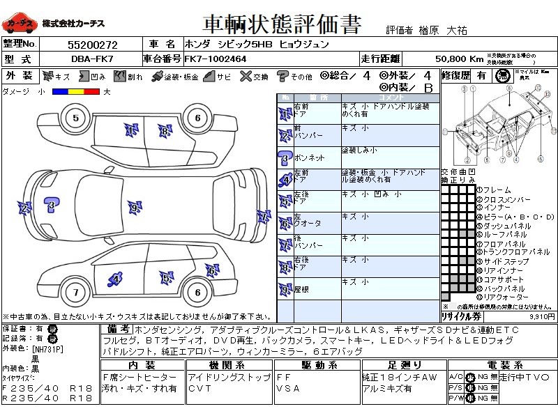 フル装備 / CD / エアバッグ / 助手席エアバッグ / サイドエアバッグ / ABS / トラクションコントロール / クルーズコントロール / カーナビゲーション(インダッシュ,2DIN) / 地デジTV / バックカメラ / ETC / アルミホイール(18インチ) / スマートキー / ウインカーミラー / フォグランプ / サイドスポイラー / リアスポイラー /