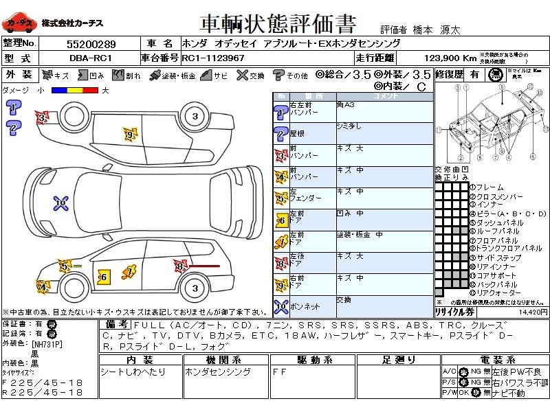 ホンダのスポーティミニバン、オデッセイです。こちらは人気のブラック色の上級グレードになります。