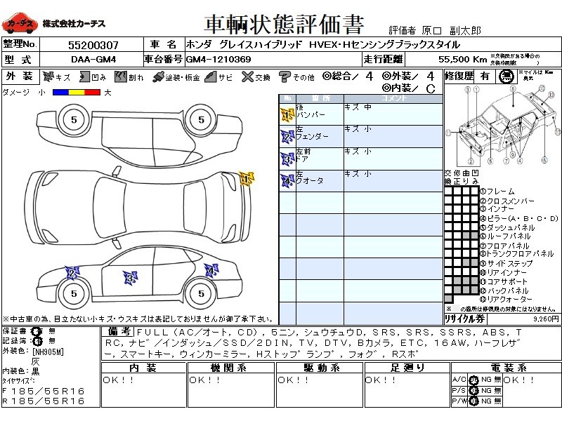 フル装備 / CD / 乗車定員(5人) / 集中ドアロック / エアバッグ / 助手席エアバッグ / サイドエアバッグ / ABS / トラクションコントロール / カーナビゲーション(インダッシュ,SSD,2DIN) / テレビ(アナログ) / 地デジTV / バックカメラ / ETC / アルミホイール(16インチ) / ハーフレザーシート / スマートキー / ウインカーミラー / ハイマウントストップランプ / フォグランプ / リアスポイラー /