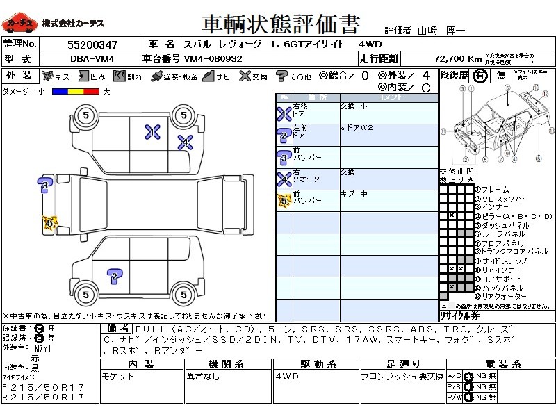 フル装備 / CD / 乗車定員(5人) / エアバッグ / 助手席エアバッグ / サイドエアバッグ / ABS / トラクションコントロール / クルーズコントロール / カーナビゲーション(インダッシュ,SSD,2DIN) / テレビ(アナログ) / 地デジTV / ETC(社外) / アルミホイール(17インチ) / スマートキー / フォグランプ / サイドスポイラー / リアスポイラー / リアアンダースポイラー /