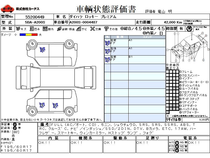 フル装備 / CD / 乗車定員(5人) / 集中ドアロック / エアバッグ / 助手席エアバッグ / サイドエアバッグ / ABS / トラクションコントロール / クルーズコントロール / カーナビゲーション(インダッシュ,SSD,2DIN) / 地デジTV / バックカメラ / ETC / アルミホイール(17インチ) / ハーフレザーシート / スマートキー / ウインカーミラー / ハイマウントストップランプ / フォグランプ /
