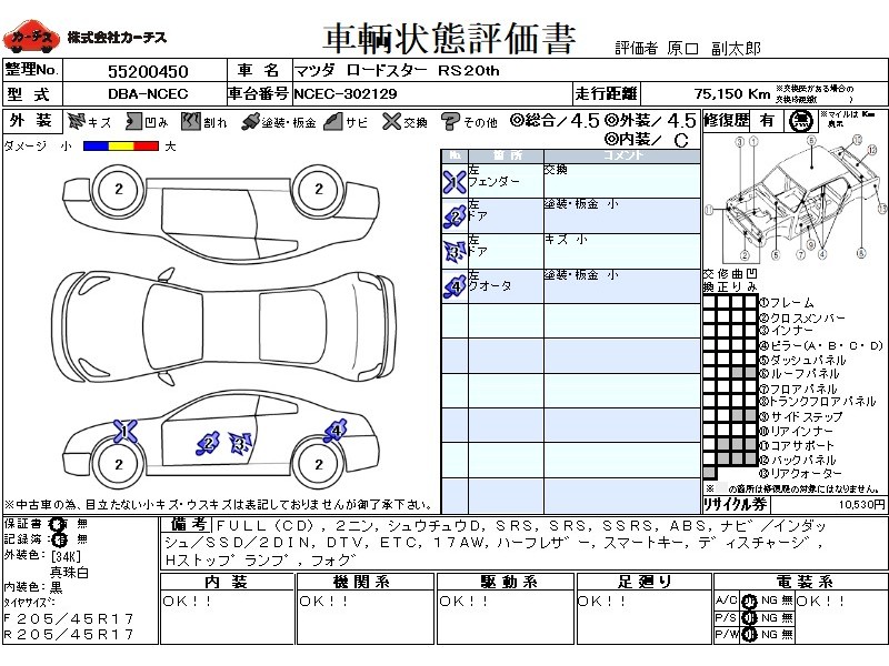 フル装備 / CD / 乗車定員(2人) / 集中ドアロック / エアバッグ / 助手席エアバッグ / サイドエアバッグ / ABS / カーナビゲーション(インダッシュ,SSD,2DIN) / 地デジTV / ETC / アルミホイール(17インチ) / ハーフレザーシート / スマートキー / ディスチャージ / ハイマウントストップランプ / フォグランプ /