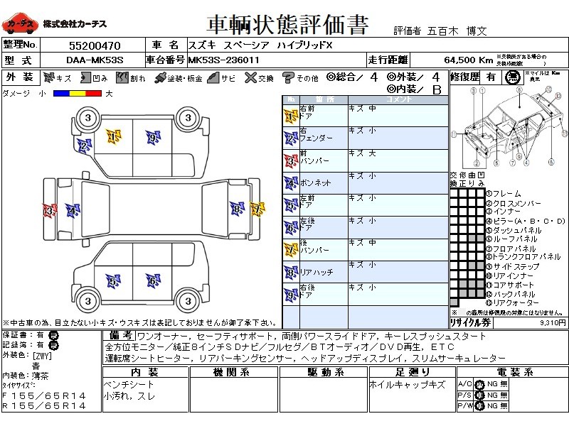令和1年式スペーシアハイブリッドXが入庫しました♪セーフティサポート搭載車♪そのほか全方位モニター対応純正8インチSDナビや両側パワースライドドアなどが付いたスズキの軽自動車です♪