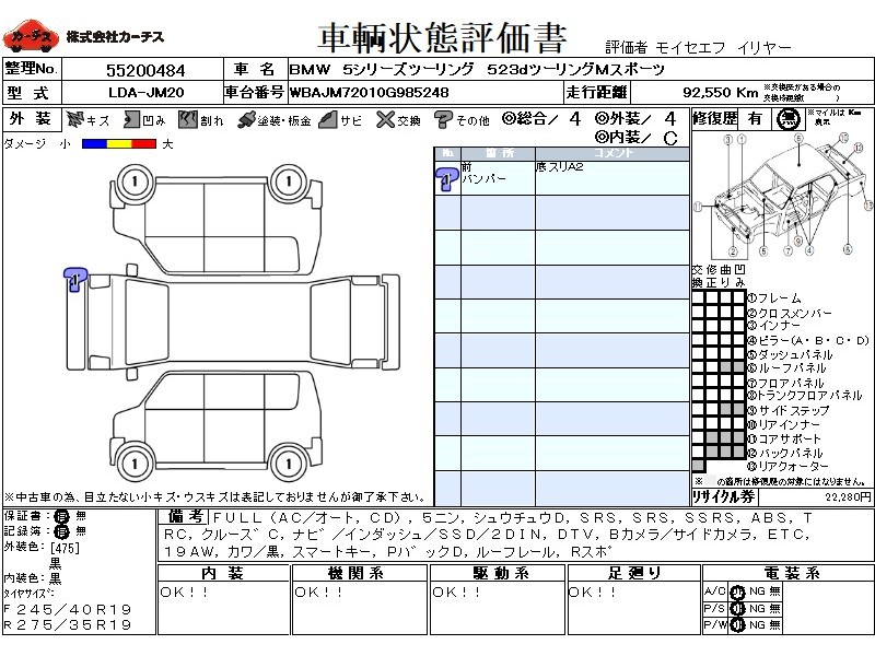 フル装備 / CD / 乗車定員(5人) / 集中ドアロック / エアバッグ / 助手席エアバッグ / サイドエアバッグ / ABS / トラクションコントロール / クルーズコントロール / カーナビゲーション(インダッシュ,SSD,2DIN) / 地デジTV / バックカメラ(サイドカメラ) / ETC / アルミホイール(19インチ) / 革シート(黒) / スマートキー / パワーバックドア / ルーフレール / リアスポイラー /