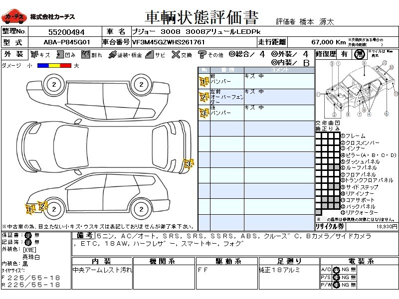 個性際立つデザインが人気のプジョー3008です。こちらはワンオーナー車で上品なツートーンカラーです。
