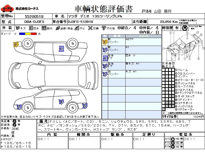 フル装備 / CD / 乗車定員(5人) / 集中ドアロック / エアバッグ / 助手席エアバッグ / サイドエアバッグ / ABS / トラクションコントロール / カーナビゲーション(オンダッシュ,SSD,2DIN) / テレビ(アナログ) / 地デジTV / バックカメラ / ETC / アルミホイール(15インチ) / ハーフレザーシート / スマートキー / ウインカーミラー / ハイマウントストップランプ / リアスポイラー /