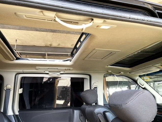 乗車定員(8人) / エアコン(オート) / パワーステアリング / パワーウィンドウ / エアバッグ / 助手席エアバッグ / ABS / カーナビゲーション(DVD) / フリップダウンモニタ / バックカメラ(サイドカメラ) / ETC / アルミホイール(17インチ) / ダブルサンルーフ / スマートキー / ディスチャージ / ウインカーミラー / ハイマウントストップランプ / パワースライドドア / フォグランプ / サイドスポイラー / リアスポイラー /