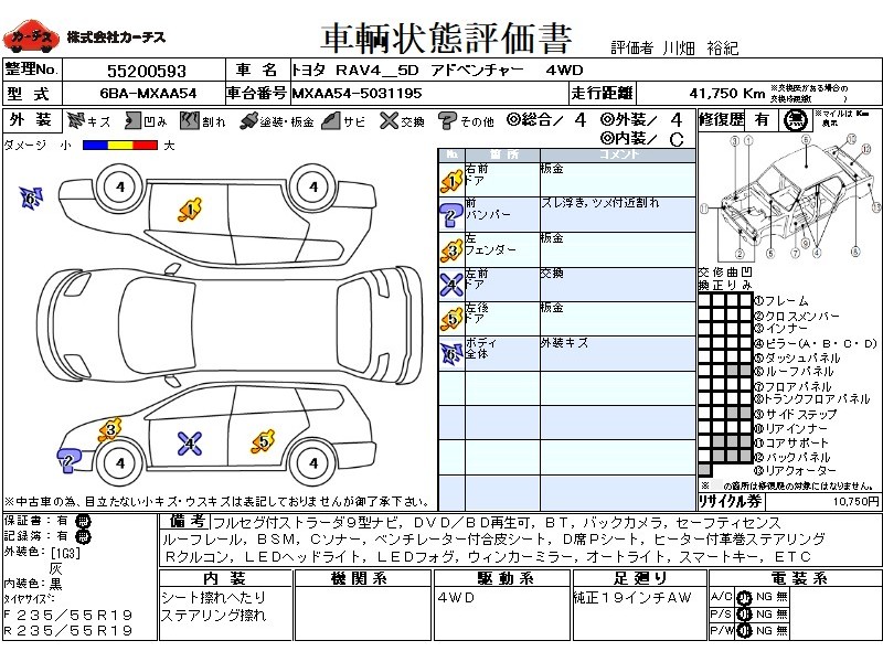 フル装備 / CD(社外) / 乗車定員(5人) / エアバッグ / 助手席エアバッグ / サイドエアバッグ / ABS / クルーズコントロール / カーナビゲーション(社外)(SSD) / テレビ(社外) / 地デジTV(社外) / ETC(社外) / アルミホイール(19インチ) / スマートキー / ウインカーミラー / ハイマウントストップランプ / フォグランプ / ルーフレール / リアスポイラー /
