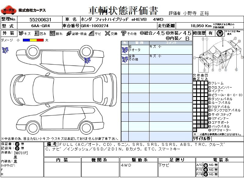 フル装備 / CD / 乗車定員(5人) / エアバッグ / 助手席エアバッグ / サイドエアバッグ / ABS / トラクションコントロール / クルーズコントロール / カーナビゲーション(インダッシュ,SSD,2DIN) / バックカメラ / ETC / スマートキー /