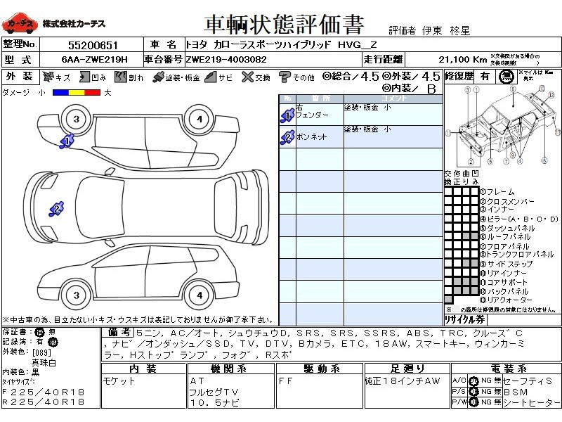 乗車定員(5人) / エアコン(オート) / パワーステアリング / パワーウィンドウ / 集中ドアロック / エアバッグ / 助手席エアバッグ / サイドエアバッグ / ABS / トラクションコントロール / クルーズコントロール / カーナビゲーション(オンダッシュ,SSD) / テレビ(アナログ) / 地デジTV / バックカメラ / ETC / アルミホイール(18インチ) / スマートキー / ウインカーミラー / ハイマウントストップランプ / フォグランプ / リアスポイラー /
