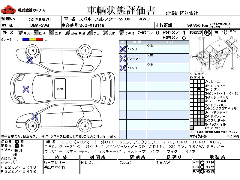 フル装備 / CD(社外) / 乗車定員(5人) / 集中ドアロック / エアバッグ / 助手席エアバッグ / サイドエアバッグ / ABS / トラクションコントロール / クルーズコントロール / カーナビゲーション(社外)(インダッシュ,HDD,2DIN) / テレビ(社外) / 地デジTV(社外) / ETC(社外) / アルミホイール(18インチ) / サンルーフ / ハーフレザーシート / スマートキー / ディスチャージ / ハイマウントストップランプ / フォグランプ / リアスポイラー /