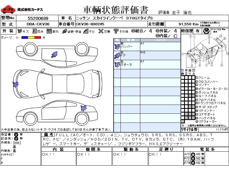 フル装備 / CD / 乗車定員(4人) / 集中ドアロック / エアバッグ / 助手席エアバッグ / サイドエアバッグ / ABS / トラクションコントロール / カーナビゲーション(インダッシュ,HDD,2DIN) / テレビ(アナログ) / 地デジTV / バックカメラ / ETC / アルミホイール(社外)(18インチ) / ハーフレザーシート / スマートキー / ディスチャージ / ウインカーミラー / ハイマウントストップランプ / リアスポイラー /