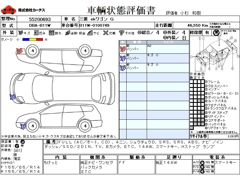 フル装備 / CD / 乗車定員(4人) / 集中ドアロック / エアバッグ / 助手席エアバッグ / ABS / カーナビゲーション(インダッシュ,SSD,2DIN) / テレビ(アナログ) / バックカメラ / ETC / アルミホイール(14インチ) / スマートキー / ハイマウントストップランプ /