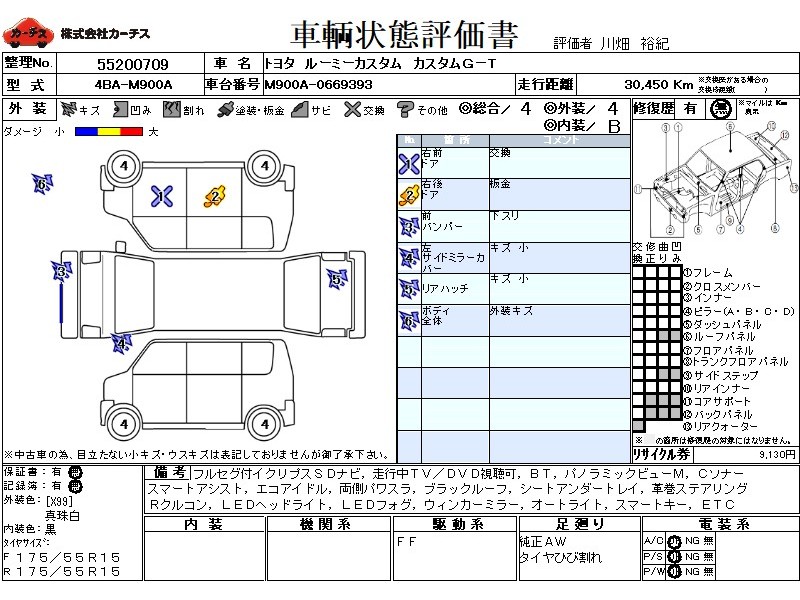 フル装備 / CD / 乗車定員(5人) / エアバッグ / 助手席エアバッグ / ABS / クルーズコントロール / カーナビゲーション(社外)(SSD) / テレビ(社外) / 地デジTV(社外) / バックカメラ(フロント) / ETC(社外) / アルミホイール(15インチ) / スマートキー / ウインカーミラー / ハイマウントストップランプ / パワースライドドア / フォグランプ /