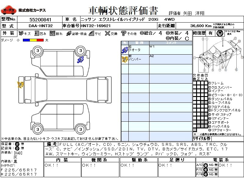 フル装備 / CD / 乗車定員(5人) / 集中ドアロック / エアバッグ / 助手席エアバッグ / ABS / トラクションコントロール / クルーズコントロール / カーナビゲーション(インダッシュ,SSD,2DIN) / テレビ(アナログ) / 地デジTV / バックカメラ(サイドカメラ) / ETC / アルミホイール(17インチ) / スマートキー / ウインカーミラー / ハイマウントストップランプ / パワーバックドア / フォグランプ / リアスポイラー /