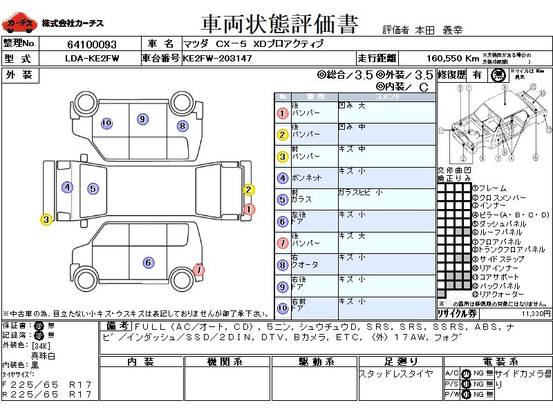 フル装備 / CD / 集中ドアロック / エアバッグ / 助手席エアバッグ / サイドエアバッグ / ABS / カーナビゲーション(インダッシュ,SSD,2DIN) / 地デジTV / バックカメラ(サイドカメラ) / ETC / アルミホイール(社外)(17インチ) / スマートキー / ウインカーミラー / ハイマウントストップランプ / フォグランプ / リアスポイラー /