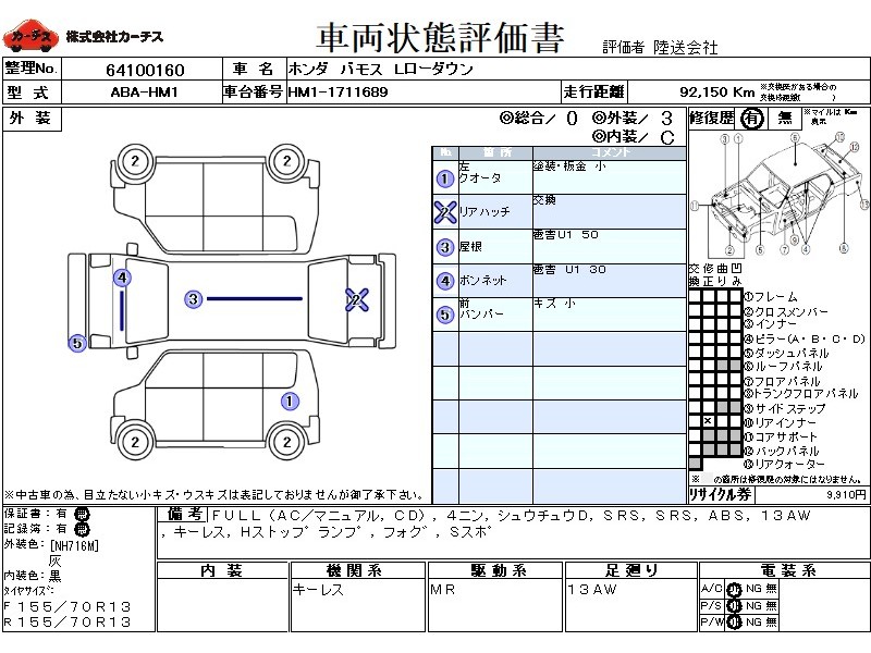 | 外装評価 | 3 |