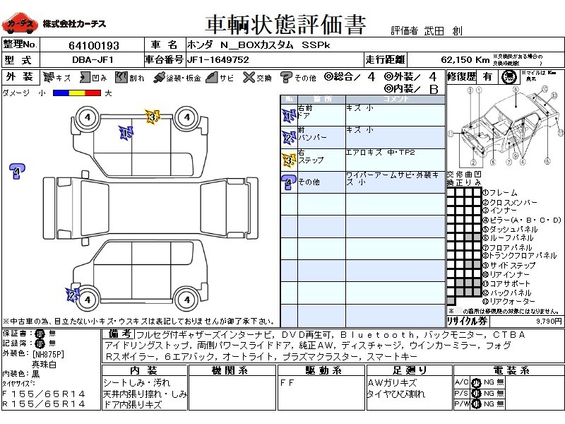 フル装備 / CD / 乗車定員(4人) / エアバッグ / 助手席エアバッグ / サイドエアバッグ / ABS / トラクションコントロール / カーナビゲーション(SSD) / テレビ(アナログ) / 地デジTV / バックカメラ / アルミホイール(14インチ) / スマートキー / ディスチャージ / ウインカーミラー / ハイマウントストップランプ / パワースライドドア / フォグランプ / サイドスポイラー / リアスポイラー /