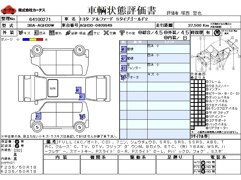 フル装備 / CD / 乗車定員(7人) / 集中ドアロック / エアバッグ / 助手席エアバッグ / サイドエアバッグ / ABS / トラクションコントロール / クルーズコントロール / テレビ(アナログ) / 地デジTV / フリップダウンモニタ / バックカメラ / ETC / アルミホイール(社外)(18インチ) / ダブルサンルーフ / ハーフレザーシート / スマートキー / パワースライドドア / パワーバックドア / フォグランプ / サイドスポイラー / リアスポイラー /
