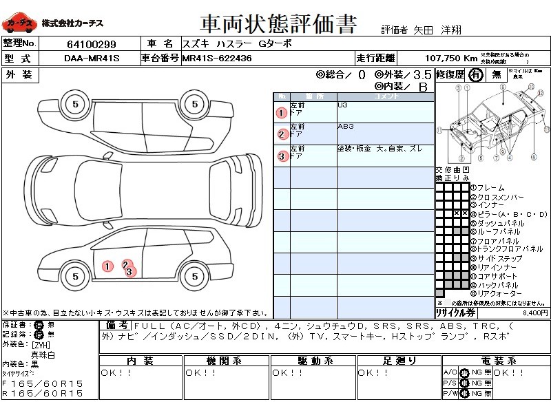フル装備 / CD(社外) / 乗車定員(4人) / 集中ドアロック / エアバッグ / 助手席エアバッグ / ABS / トラクションコントロール / カーナビゲーション(社外)(インダッシュ,SSD,2DIN) / テレビ(社外) / 地デジTV(社外) / ETC(社外) / スマートキー / ハイマウントストップランプ / リアスポイラー / マフラー(社外) /