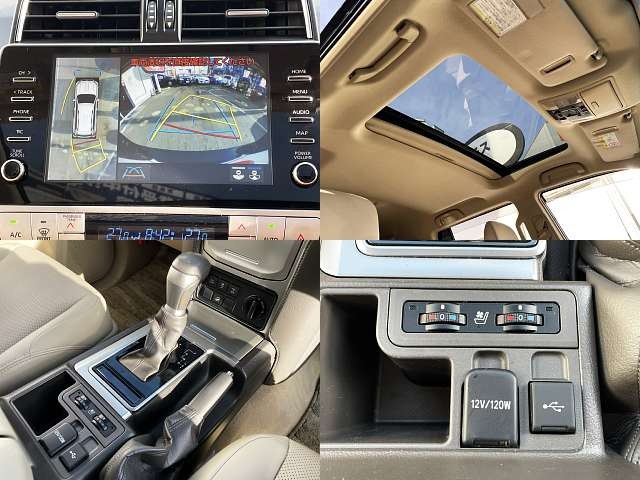 乗車定員(7人) / エアコン(オート) / パワーステアリング / パワーウィンドウ / エアバッグ / 助手席エアバッグ / サイドエアバッグ / ABS / トラクションコントロール / クルーズコントロール / カーナビゲーション(インダッシュ,SSD) / バックカメラ(サイドカメラ) / ETC / アルミホイール(社外)(20インチ) / サンルーフ / 革シート(クリーム) / スマートキー / ウインカーミラー / ハイマウントストップランプ / フォグランプ / ルーフレール / フロントスポイラー / サイドスポイラー / リアスポイラー / リアアンダースポイラー /