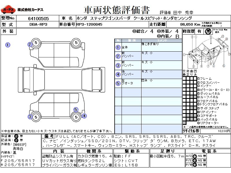 フル装備 / CD / 乗車定員(8人) / エアバッグ / 助手席エアバッグ / サイドエアバッグ / ABS / トラクションコントロール / クルーズコントロール / カーナビゲーション(インダッシュ,SSD,2DIN) / 地デジTV / フリップダウンモニタ / バックカメラ / ETC / アルミホイール(17インチ) / ハーフレザーシート / スマートキー / ウインカーミラー / ハイマウントストップランプ / パワースライドドア / フォグランプ / サイドスポイラー / リアスポイラー /