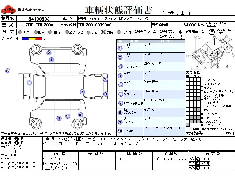 フル装備 / CD / 乗車定員(5人) / エアバッグ / 助手席エアバッグ / ABS / カーナビゲーション(SSD) / テレビ(アナログ) / 地デジTV / バックカメラ / ETC / キーレスエントリー / ハイマウントストップランプ /