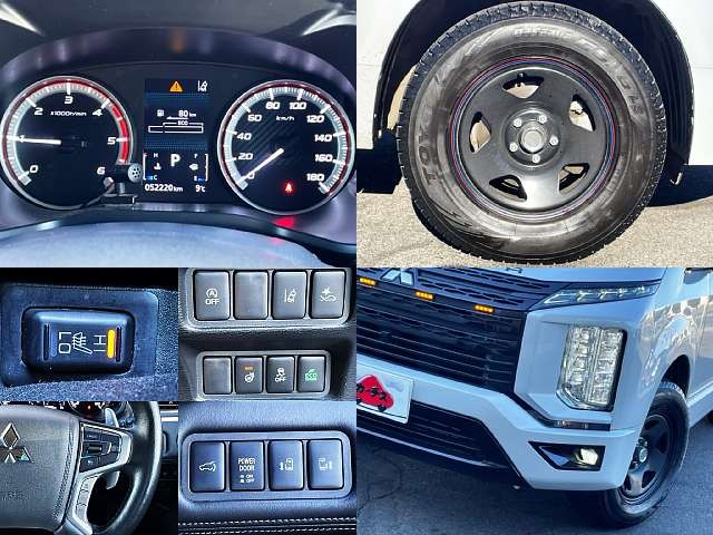 乗車定員(8人) / エアコン(オート) / パワーステアリング / パワーウィンドウ / 集中ドアロック / エアバッグ / 助手席エアバッグ / サイドエアバッグ / ABS / トラクションコントロール / クルーズコントロール / バックカメラ(フロント) / スマートキー / パワースライドドア / パワーバックドア / フォグランプ /
