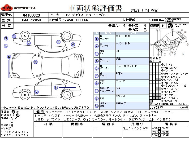 フル装備 / CD / 乗車定員(5人) / エアバッグ / 助手席エアバッグ / サイドエアバッグ / ABS / クルーズコントロール / カーナビゲーション(SSD) / テレビ(アナログ) / 地デジTV / バックカメラ / ETC / アルミホイール(17インチ) / スマートキー / ウインカーミラー / ハイマウントストップランプ / フォグランプ /
