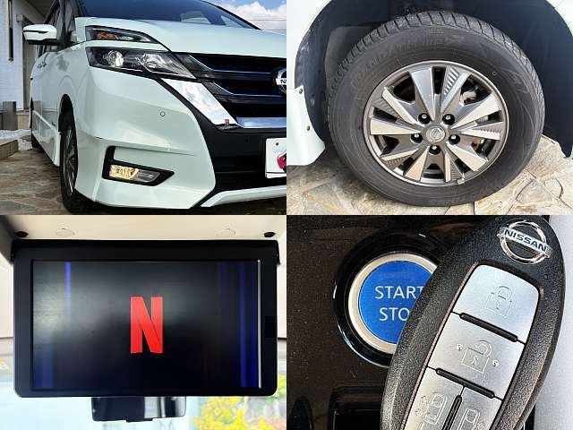 フル装備 / CD / 乗車定員(7人) / 集中ドアロック / エアバッグ / 助手席エアバッグ / サイドエアバッグ / ABS / トラクションコントロール / クルーズコントロール / カーナビゲーション(インダッシュ,SSD,2DIN) / テレビ(アナログ) / 地デジTV / フリップダウンモニタ / バックカメラ(サイドカメラ) / ETC / アルミホイール(15インチ) / スマートキー / ウインカーミラー / ハイマウントストップランプ / パワースライドドア / フォグランプ / サイドスポイラー / リアスポイラー /
