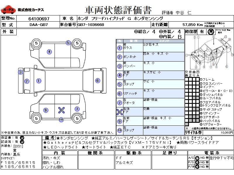 フル装備 / CD / 乗車定員(7人) / 集中ドアロック / エアバッグ / 助手席エアバッグ / サイドエアバッグ / ABS / トラクションコントロール / クルーズコントロール / カーナビゲーション(インダッシュ,SSD,2DIN) / 地デジTV / バックカメラ / ETC / アルミホイール(15インチ) / ハーフレザーシート / スマートキー / ウインカーミラー / ハイマウントストップランプ / パワースライドドア / フォグランプ /