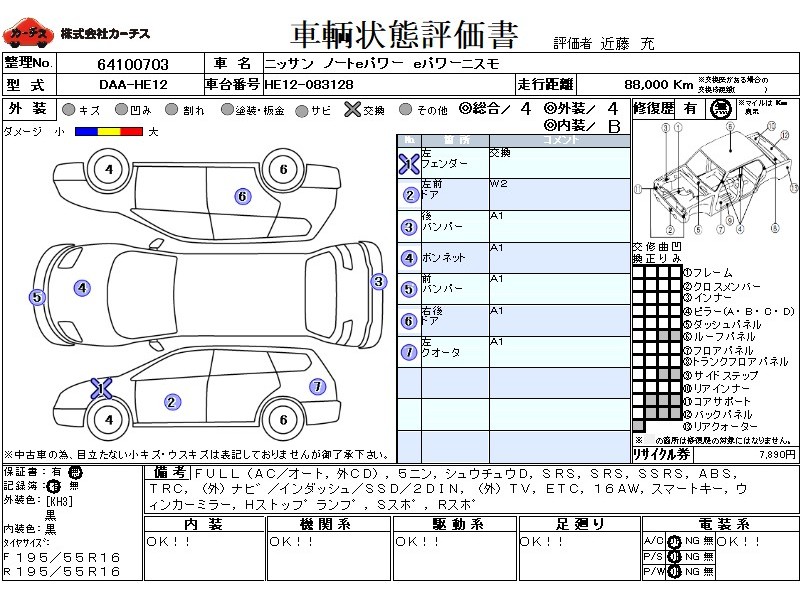フル装備 / CD(社外) / 乗車定員(5人) / 集中ドアロック / エアバッグ / 助手席エアバッグ / サイドエアバッグ / ABS / トラクションコントロール / カーナビゲーション(社外)(インダッシュ,SSD,2DIN) / テレビ(社外) / 地デジTV(社外) / ETC / アルミホイール(16インチ) / スマートキー / ウインカーミラー / ハイマウントストップランプ / サイドスポイラー / リアスポイラー /