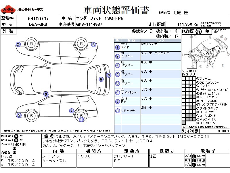 フル装備 / CD(社外) / 乗車定員(5人) / 集中ドアロック / エアバッグ / 助手席エアバッグ / サイドエアバッグ / ABS / トラクションコントロール / カーナビゲーション(社外)(インダッシュ,SSD,2DIN) / 地デジTV(社外) / ETC(社外) / スマートキー / ウインカーミラー / ハイマウントストップランプ /