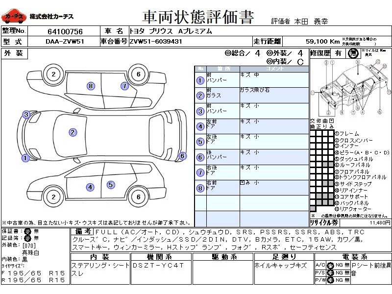 フル装備 / CD / 集中ドアロック / エアバッグ / 助手席エアバッグ / サイドエアバッグ / ABS / トラクションコントロール / クルーズコントロール / カーナビゲーション(インダッシュ,SSD,2DIN) / 地デジTV / バックカメラ / ETC / アルミホイール(15インチ) / 革シート(黒) / スマートキー / ウインカーミラー / ハイマウントストップランプ / フォグランプ / リアスポイラー /