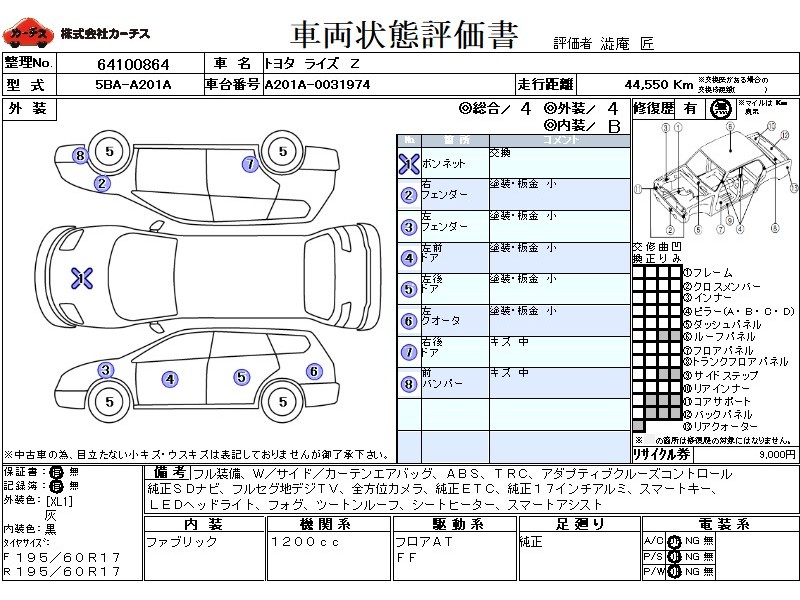 フル装備 / CD / 乗車定員(5人) / 集中ドアロック / エアバッグ / 助手席エアバッグ / サイドエアバッグ / ABS / トラクションコントロール / クルーズコントロール / カーナビゲーション(インダッシュ,SSD,2DIN) / 地デジTV / バックカメラ(サイドカメラ) / ETC / アルミホイール(17インチ) / スマートキー / ウインカーミラー / ハイマウントストップランプ / フォグランプ / リアスポイラー /