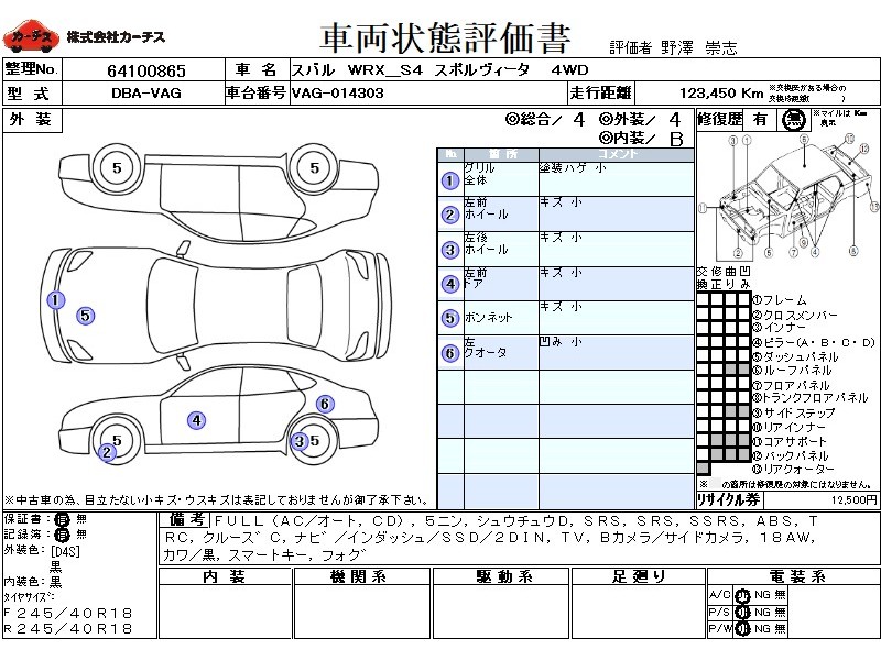 フル装備 / CD / 乗車定員(5人) / 集中ドアロック / エアバッグ / 助手席エアバッグ / サイドエアバッグ / ABS / トラクションコントロール / クルーズコントロール / カーナビゲーション(インダッシュ,SSD,2DIN) / テレビ(アナログ) / バックカメラ(サイドカメラ) / ETC(社外) / アルミホイール(18インチ) / 革シート(黒) / スマートキー / フォグランプ /