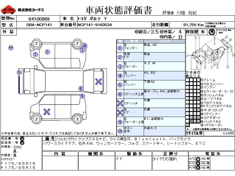 フル装備 / CD(社外) / 乗車定員(5人) / エアバッグ / 助手席エアバッグ / ABS / カーナビゲーション(社外)(SSD) / テレビ(社外) / 地デジTV(社外) / ETC(社外) / アルミホイール(社外)(15インチ) / スマートキー / ウインカーミラー / ハイマウントストップランプ / パワースライドドア / フォグランプ /