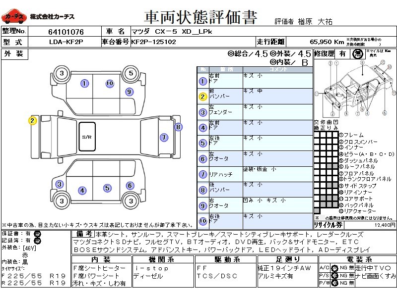 本革シート サンルーフ スマートブレーキ/スマートシティブレーキサポート レーダークルーズコントロール マツダコネクトSDナビ フルセグTV BTオーディオ DVD再生 バック&サイドカメラ BOSEサウンドシステム アドバンストキー パワーバックドア LEDヘッドライト6 LEDフォグ 純正19インチアルミ F席シートヒーター AD-ディスプレイ 禁煙車