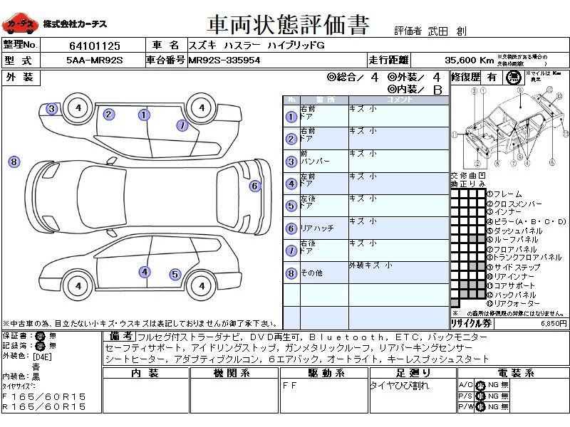 フル装備 / CD(社外) / 乗車定員(4人) / エアバッグ / 助手席エアバッグ / サイドエアバッグ / ABS / トラクションコントロール / クルーズコントロール / カーナビゲーション(社外)(SSD) / テレビ(社外) / 地デジTV(社外) / ETC(社外) / スマートキー / ハイマウントストップランプ /