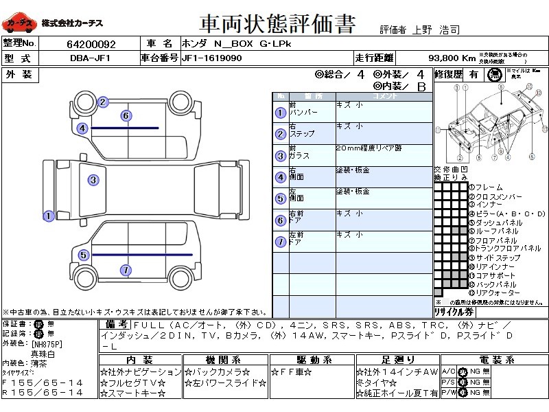 フル装備 / CD(社外) / 乗車定員(4人) / エアバッグ / 助手席エアバッグ / ABS / トラクションコントロール / カーナビゲーション(社外)(インダッシュ,2DIN) / テレビ(アナログ) / バックカメラ / ETC(社外) / アルミホイール(社外)(14インチ) / スマートキー / パワースライドドア /