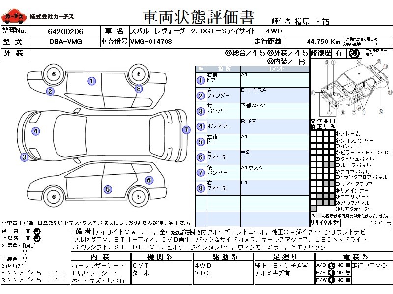 アイサイトVER.3 全車速追従機能付クルーズコントロール アドバンスドセイフティPKG 純正OPダイヤトーンサウンドナビ&連動ETC フルセグTV BTオーディオ DVD再生 バック&サイドカメラ キーレスアクセス LEDヘッドライト 純正18インチアルミ パドルシフト SI-DRIVE ハーフレザーシート F席パワーシート ビルシュタインダンパー 禁煙車