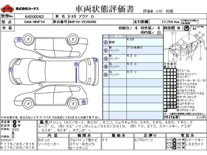 フル装備 / CD(社外) / 乗車定員(5人) / 集中ドアロック / エアバッグ / 助手席エアバッグ / ABS / トラクションコントロール / クルーズコントロール / カーナビゲーション(社外)(インダッシュ,SSD,2DIN) / テレビ(社外) / 地デジTV(社外) / ETC / スマートキー / フロントスポイラー / サイドスポイラー / リアスポイラー / リアアンダースポイラー /