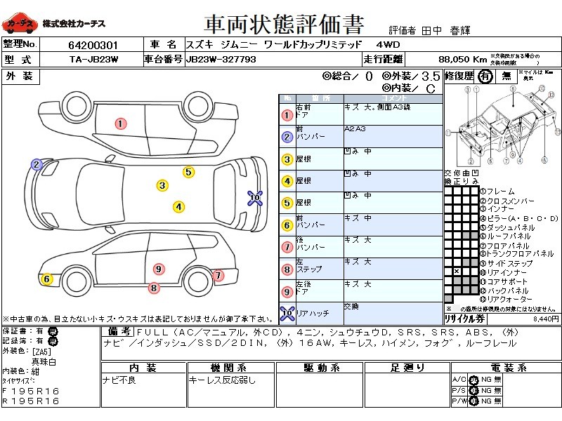 FULL(AC/マニュアル,外CD),4ニン,シュウチュウD,SRS,PSSRS,ABS,(外)ナヒ゛/インダッシュ/SSD/2DIN,(外)16AW,キーレス,ハイメン,フォク゛,ルーフレール