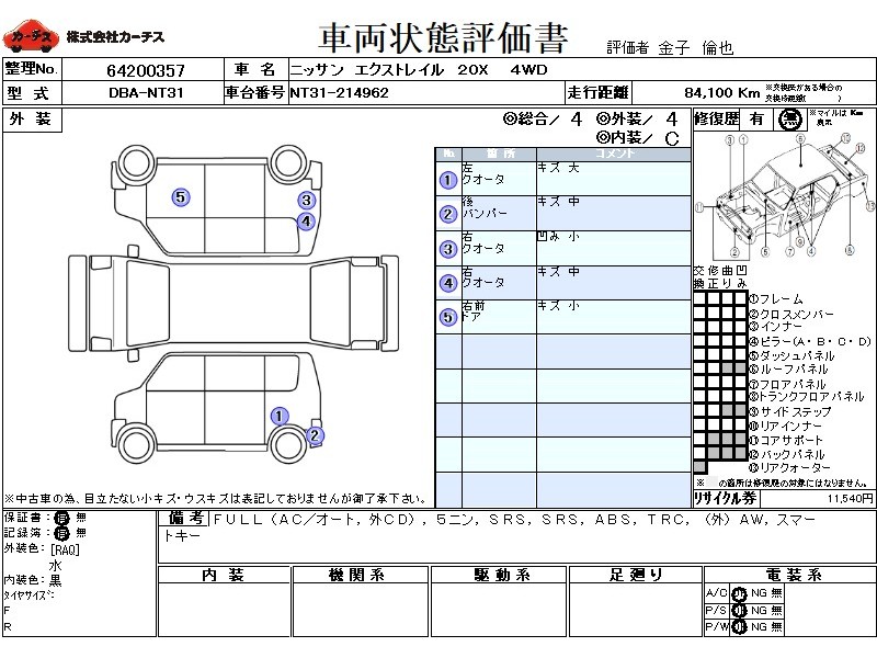 | 外装評価 | 4 |